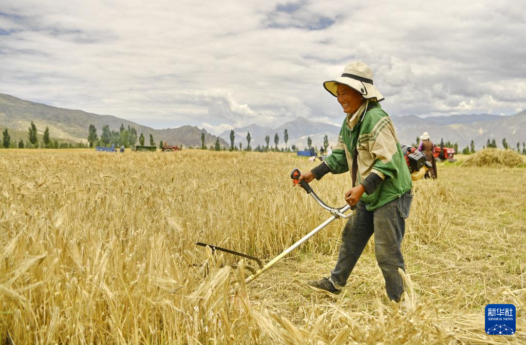 7月31日,山南市扎囊縣扎其鄉(xiāng)朗賽嶺村村民在收割青稞。新華社記者 張汝鋒 攝