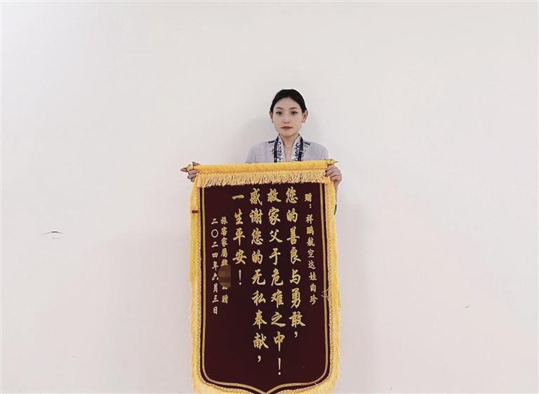 因機場醫(yī)療資源有限,達娃曲珍協(xié)助聯(lián)系救護車將旅客第一時間轉(zhuǎn)移至自治區(qū)第二人民醫(yī)院進行救治,并主動幫助旅客處理好后續(xù)票務問題。事后,旅客家屬聯(lián)系祥鵬航空客服平臺,表達了對達娃曲珍的感謝,并于返藏后送上一面錦旗再次表達了謝意。