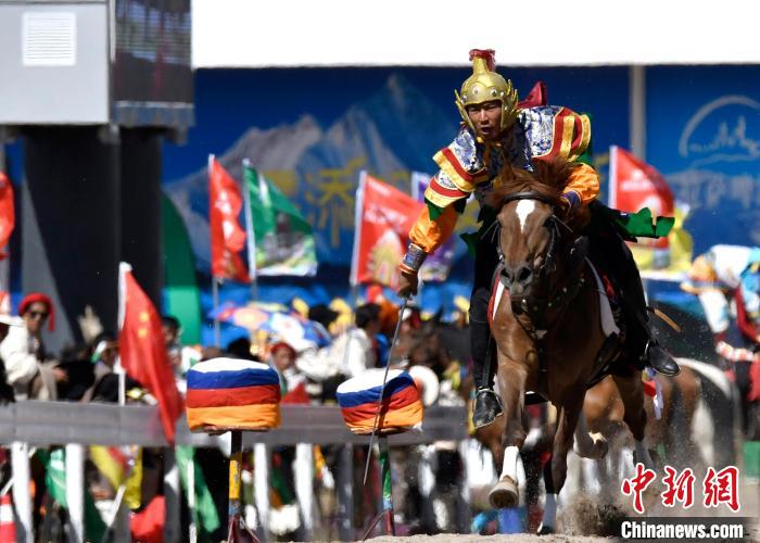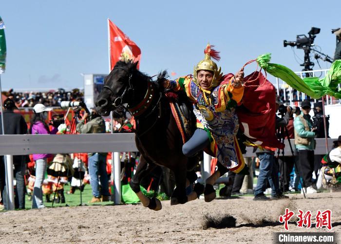 8月10日,2024年那曲恰青賽馬節(jié)暨第三屆“鄉(xiāng)村振興 那曲奮進”活動開幕式在那曲市賽馬場舉行,精彩的文藝歌舞、馬術表演等展示著羌塘草原上的無窮魅力和活力。圖為開幕式上的馬術表演。中新社記者 李林 攝