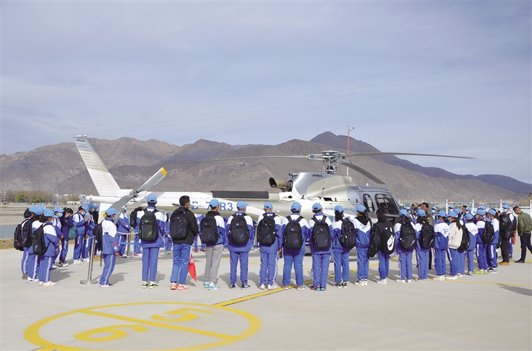 拉薩市中學(xué)生開展“游學(xué)幸福新拉薩 共筑美麗中國夢”主題研學(xué)實踐教育活動,參觀高原直升機。