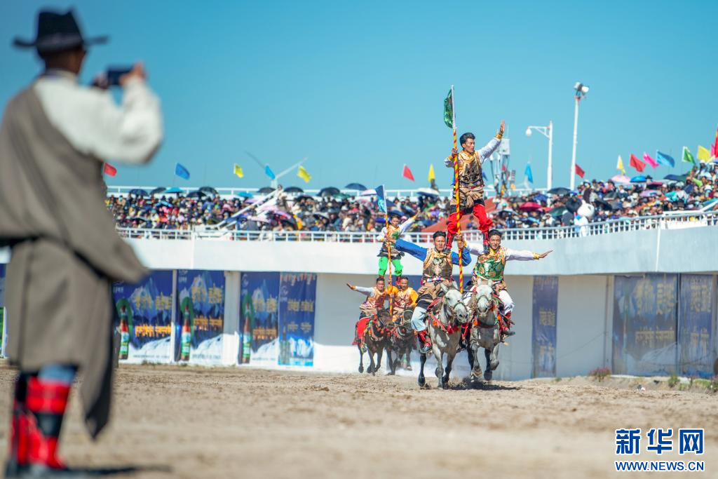 8月10日,2024年恰青賽馬節(jié)開幕式馬術表演。新華網 旦增努布 攝
