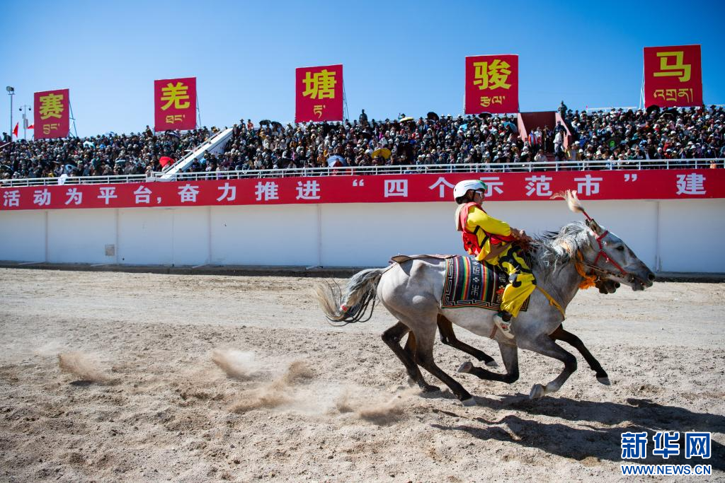 8月11日,騎手在走馬比賽中。新華網 旦增努布 攝