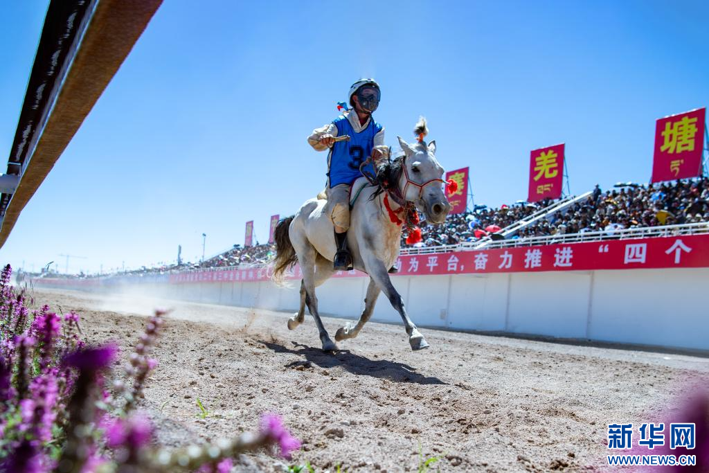8月11日,騎手在場名馬冠軍比賽中。新華網 旦增努布 攝