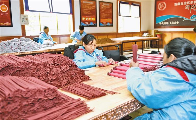 2008年6月,藏香制作技藝被列入國(guó)家級(jí)非物質(zhì)文化遺產(chǎn)名錄。經(jīng)過多年發(fā)展,藏香已成為西藏自治區(qū)極具發(fā)展?jié)摿Φ奶厣a(chǎn)業(yè)之一,越來越多的藏香加工廠吸納當(dāng)?shù)厝罕娋蜆I(yè),帶動(dòng)群眾增收致富。