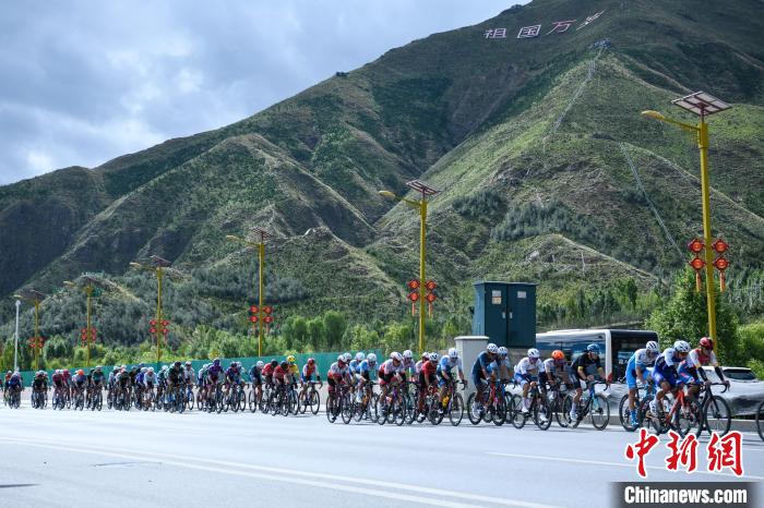 8月24日,2024中國西藏第五屆跨喜馬拉雅國際公路自行車極限賽第二賽段在拉薩開賽。據(jù)悉,本賽段總距離約90.34公里,吸引了來自中國、西班牙、哈薩克斯坦等22支車隊。圖為參賽車手在比賽中。中新社記者 貢嘎來松 攝