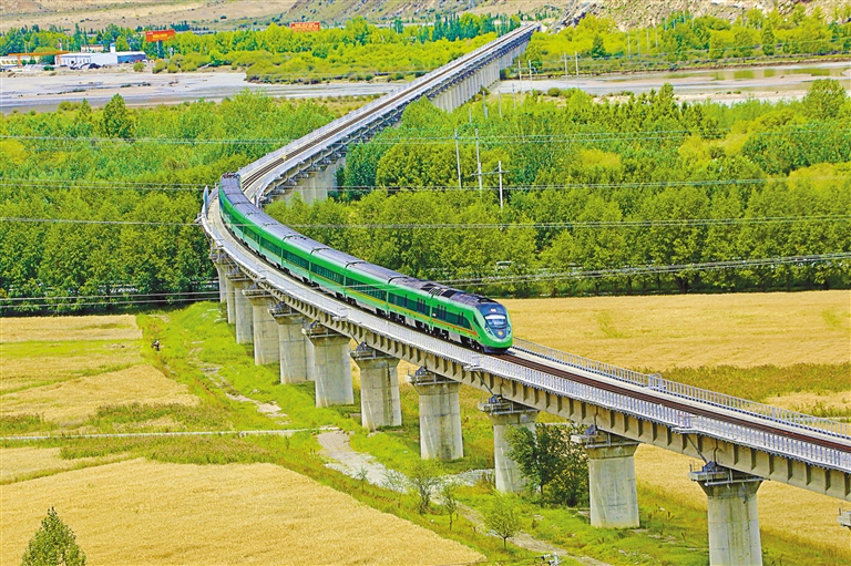 運(yùn)行在拉日鐵路上的復(fù)興號動(dòng)車組列車。