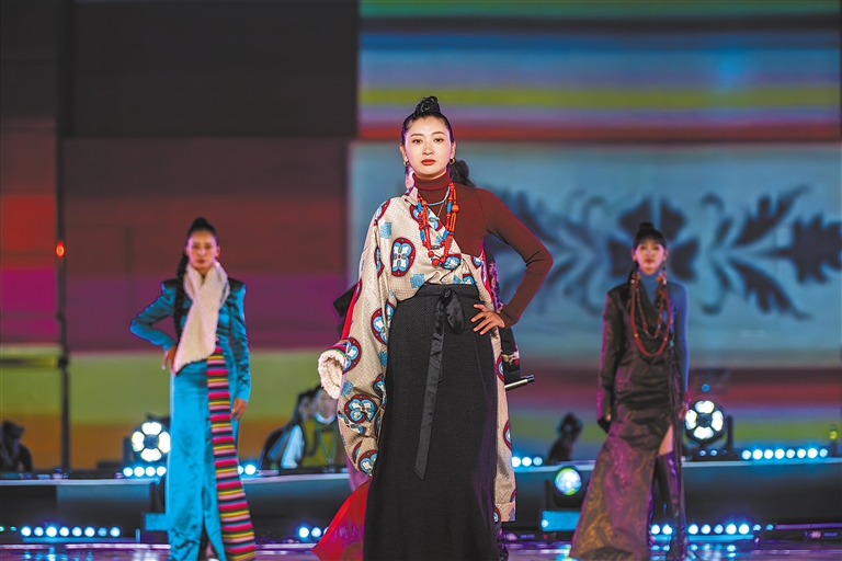 服裝秀表演《天上的羊卓雍措》在晚會中驚艷亮相。系列服飾完美融合了藏族傳統(tǒng)服飾元素與當(dāng)代時(shí)尚潮流,是由湖南省援藏工作隊(duì)株洲工作組的成員們以扎囊縣氆氌為原料創(chuàng)作而成。開幕式總導(dǎo)演李詞岳說:“為了更好地展現(xiàn)舞臺效果,我們團(tuán)隊(duì)克服高原反應(yīng),專門前往羊卓雍措拍攝服裝秀相關(guān)素材,希望通過這次服裝秀讓更多人了解山南、走進(jìn)山南?!?/p>