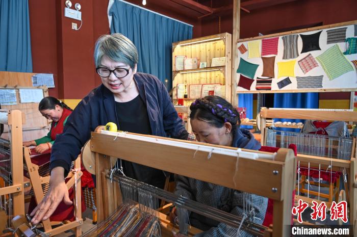 2023年,上海援藏工作隊(duì)引入“上海工匠”郭秀玲領(lǐng)銜的沙涓品牌,通過“企業(yè)+合作社+農(nóng)戶”發(fā)展模式,打造氆氌制作的“前店后坊”模式。從此,次仁吉巴等一批“阿佳”開始學(xué)習(xí)用新型工藝制作氆氌產(chǎn)品。