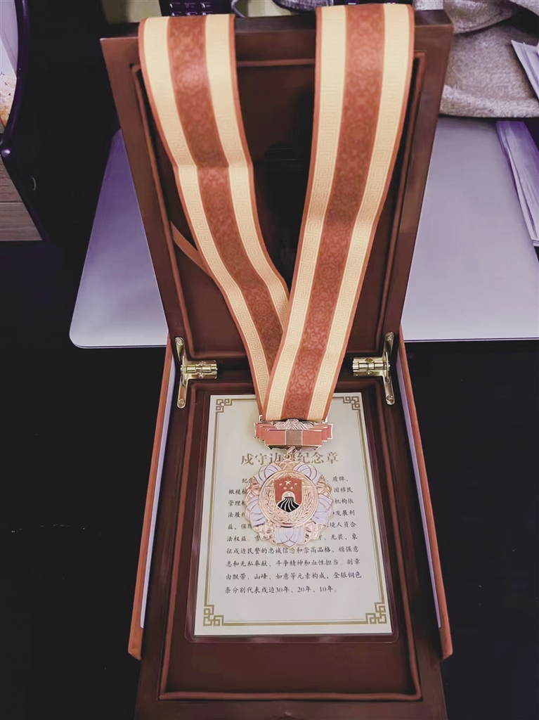 2023年4月17日,拉巴旦增收到了由國家移民管理局頒發(fā)的戍守邊疆銅質(zhì)紀(jì)念章,證書上附有說明:金銀銅色條分別代表戍邊30年、20年、10年。目前,拉巴旦增手握銅質(zhì)紀(jì)念章,但他的目光已望向更遙遠(yuǎn)的未來,正如他置頂朋友圈里那句擲地有聲的標(biāo)語:一生只做一件事,我為祖國守邊疆。轉(zhuǎn)眼14載春秋,拉巴旦增以滿腔熱血和不懈堅持,將年少的小小夢想繪成祖國邊陲的輝煌篇章,深深詮釋了“因?yàn)闊釔鄱档谩薄?/p>