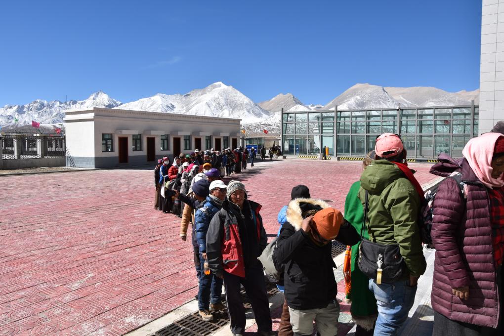 排隊(duì)等待從里孜口岸入境的民眾。(受訪者供圖)
