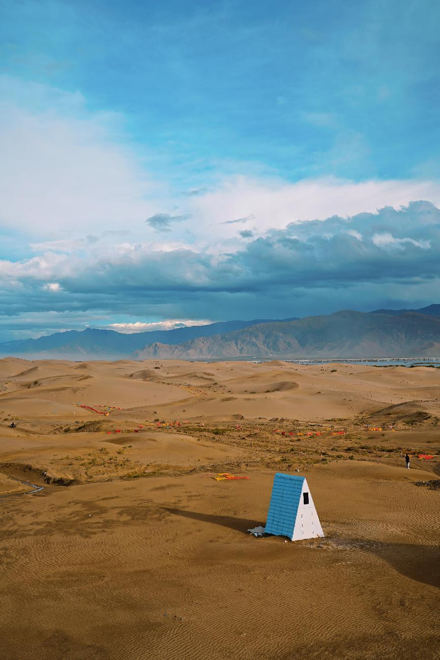 在扎囊縣沙丘公園,踩線團親身感受連綿沙丘,與周邊的山水形成鮮明對比,只道是,山南風光無限好,圣地奇景醉心潮。