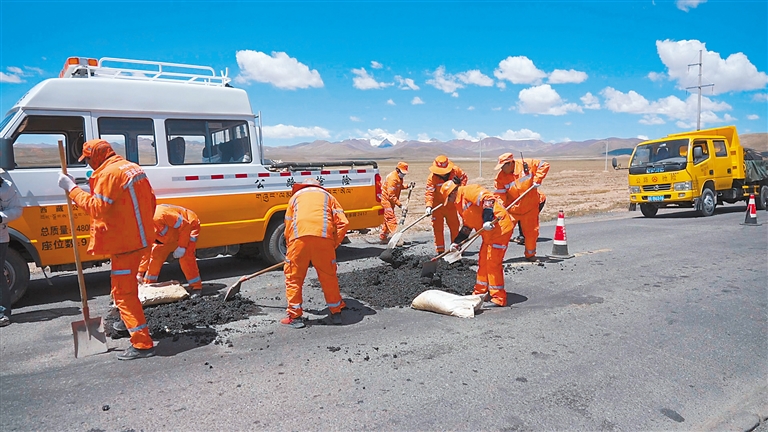 “我們養(yǎng)護(hù)的這段公路,每年只有兩個(gè)季節(jié),冬季和夏季。冬季漫長(zhǎng),主要的工作是鏟雪保通;夏季短暫,主要就是不斷填坑鋪油?!钡馗赂嬖V記者,青藏公路長(zhǎng)期承擔(dān)著進(jìn)出藏物資運(yùn)輸重任,每天進(jìn)出藏車流量大。養(yǎng)護(hù)保通工作雖然單調(diào),但大家都明白這份工作的重要性。