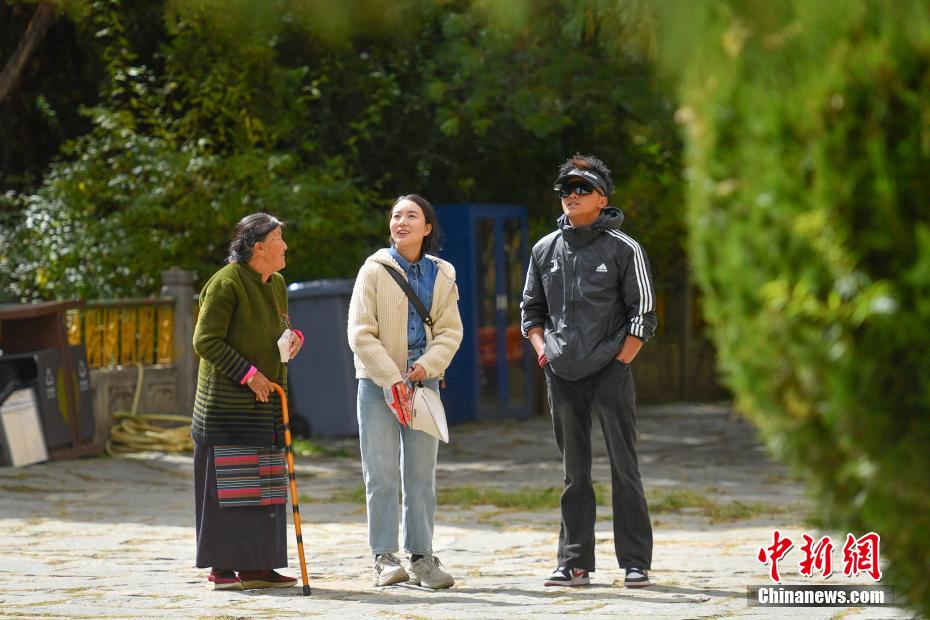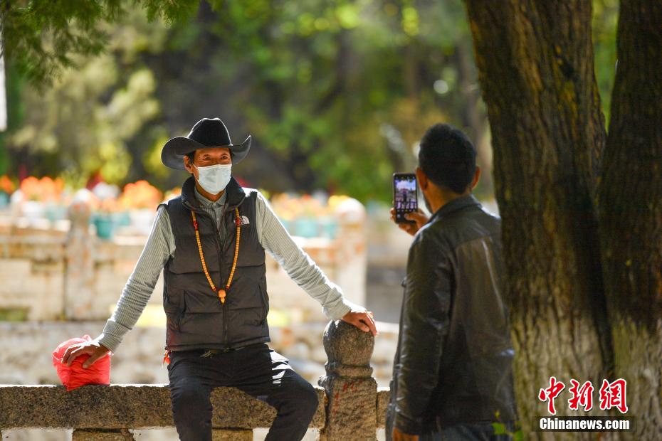 金秋十月,拉薩市西郊羅布林卡秋意正濃,景色宜人。眾多市民、游客紛紛前往打卡。羅布林卡藏語意為“寶貝園林”,始建于公元十八世紀40年代,是典型的藏式風格園林,也是西藏的世界文化遺產(chǎn)之一,有格桑林卡、措吉頗章、金色頗章等宮殿建筑群。這里秋景如畫,成為人們感受自然與歷史文化的好去處。圖為10月21日,民眾在羅布林卡內(nèi)拍照留念。貢確 攝