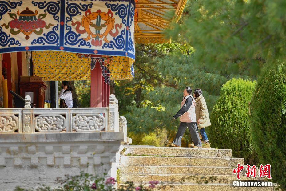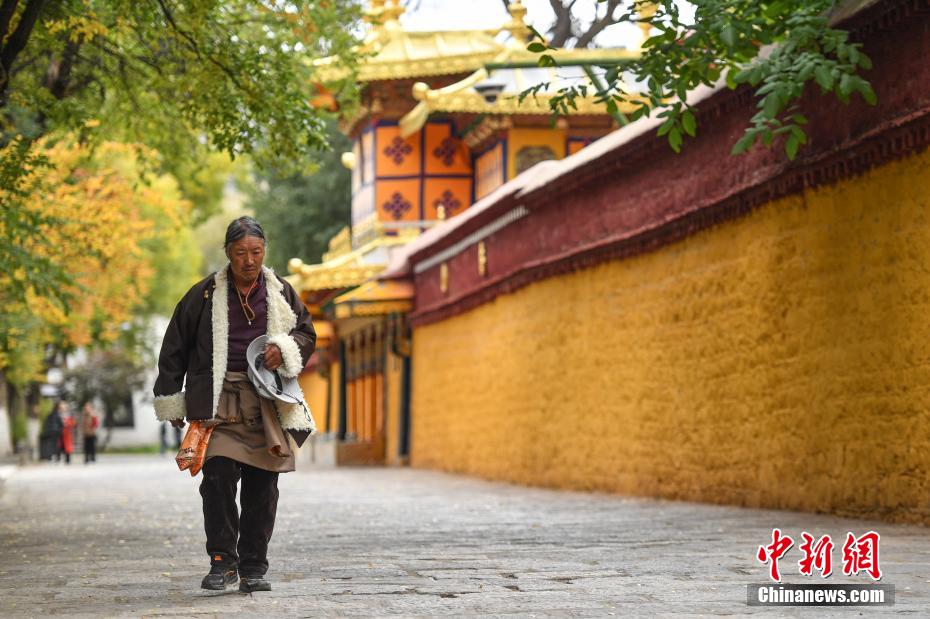 金秋十月,拉薩市西郊羅布林卡秋意正濃,景色宜人。眾多市民、游客紛紛前往打卡。羅布林卡藏語意為“寶貝園林”,始建于公元十八世紀40年代,是典型的藏式風格園林,也是西藏的世界文化遺產(chǎn)之一,有格桑林卡、措吉頗章、金色頗章等宮殿建筑群。這里秋景如畫,成為人們感受自然與歷史文化的好去處。圖為10月21日,民眾在羅布林卡內(nèi)參觀游覽。貢嘎來松 攝