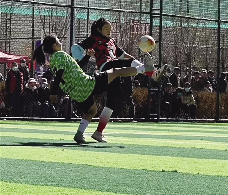而最能證明她們訓(xùn)練成果的就是足球聯(lián)賽?!?023年“迎新杯”酷銳運(yùn)動拉薩業(yè)余足球5人制(女子組)比賽、第二屆“亞克杯”女子5人制交流賽在拉薩開賽,這也是西藏少有的女足賽事。米央以拉薩另類女子足球隊隊員身份參賽,盡管米央是隊內(nèi)年紀(jì)最小的成員,但她的能力絲毫不遜于任何人。米央所在的這支由高中生、大學(xué)生等組成的隊伍,經(jīng)過10場比賽,拼盡全力最終奪得冠軍。“每當(dāng)足球在我腳下滾動飛躍,每當(dāng)我奔跑在綠茵場上,那種肆意和快樂讓我堅定我的選擇,我的夢想是踢進(jìn)中國國家女子足球隊?!泵籽胝f。雖然她與夢想還有距離,但內(nèi)心那股熊熊燃燒的信念力量,成為她刻苦訓(xùn)練的“定心丸”。