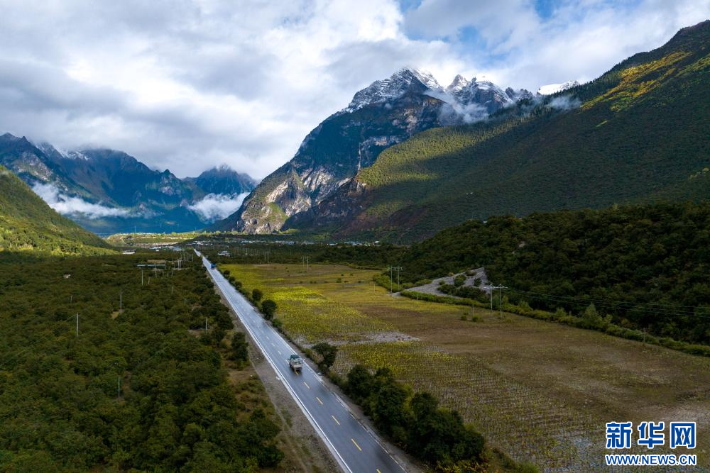 10月11日,在西藏林芝市波密縣境內(nèi)拍攝的川藏公路(無人機(jī)照片)。新華網(wǎng) 旦增努布 攝