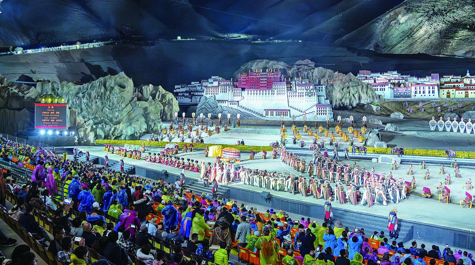 《文成公主》實景劇演出?!段某晒鳌穼嵕皠鎏峁?/p>