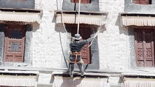 趁著一年一度的布達拉宮“粉刷季”開啟,跟著記者一起去感受熱鬧“甜蜜”的粉刷時刻吧!