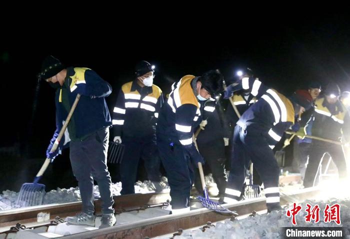 圖為拉林鐵路沿線鐵路維修職工深夜作業(yè)。馬生明 攝