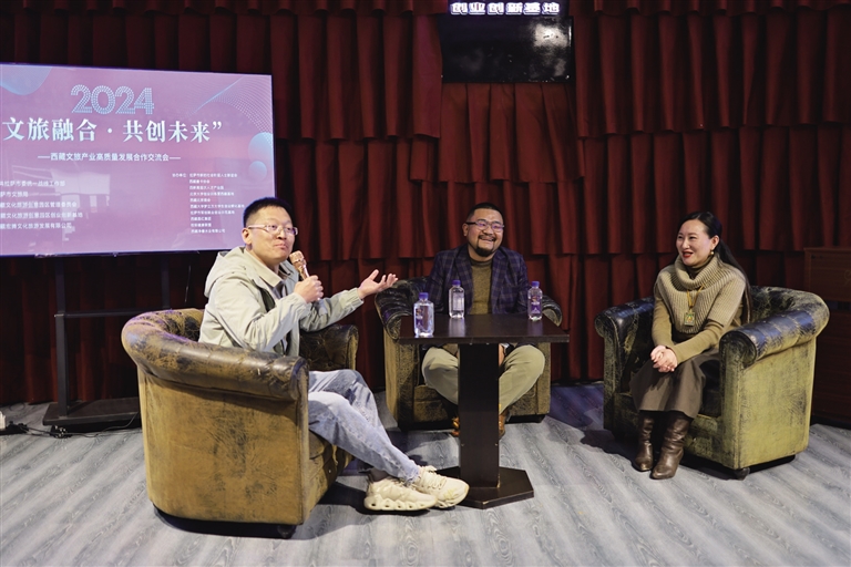 活動(dòng)在西藏文化旅游創(chuàng)意園區(qū)創(chuàng)業(yè)創(chuàng)新基地路演中心開展,邀請(qǐng)了拉薩市政協(xié)常委、國家創(chuàng)新工程師楊永濤,西藏自治區(qū)政協(xié)委員、西藏青企協(xié)副秘書長珠勤,西藏自治區(qū)文化產(chǎn)業(yè)專家?guī)斐蓡T、拉薩市政協(xié)委員鄧?yán)麆?,三位資深專家進(jìn)行了經(jīng)驗(yàn)分享,并與參會(huì)企業(yè)代表以沙龍形式互動(dòng)交流。現(xiàn)場,參會(huì)者們積極參與討論,交流心得,共同探討文旅融合的新思路、新方向,為文旅產(chǎn)業(yè)創(chuàng)新發(fā)展注入新活力。