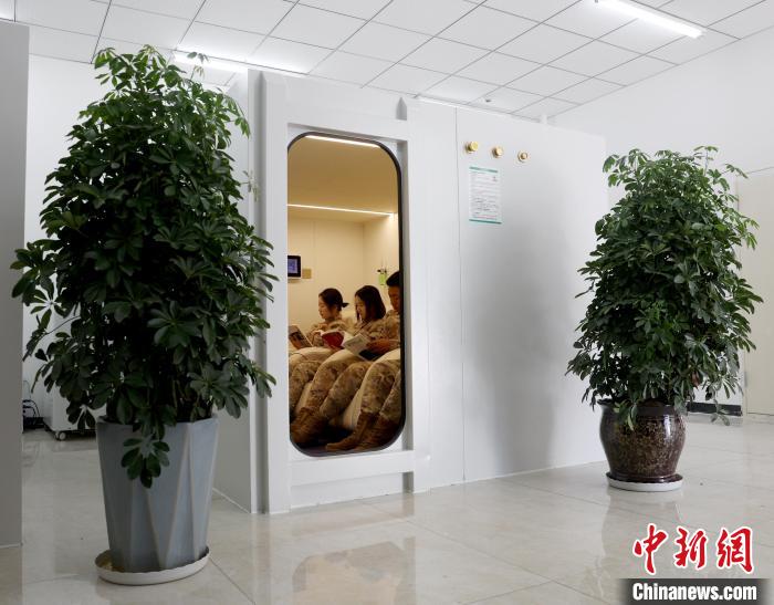 圖為駐地官兵在微壓富氧艙內(nèi)閱讀。黎子億 攝
