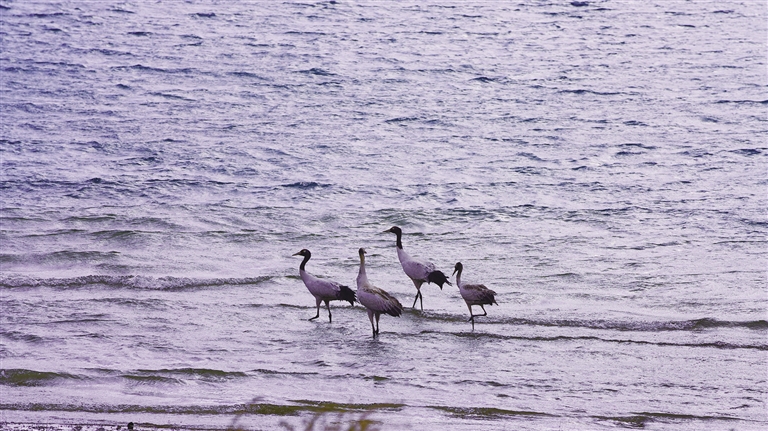 記者了解到,近年來隨著西藏高度重視黑頸鶴等野生動(dòng)物的保護(hù)工作,通過建立黑頸鶴國家級(jí)自然保護(hù)區(qū)、實(shí)施生態(tài)修復(fù)工程,有效改善了黑頸鶴的生存環(huán)境。據(jù)統(tǒng)計(jì),西藏境內(nèi)的黑頸鶴數(shù)量由不到3000只增加到1萬多只,種群數(shù)量也在持續(xù)增長。(圖由洛克 益西曲珍提供)