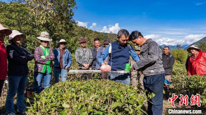 圖為技術(shù)專家詳細(xì)講解茶樹修剪的科學(xué)方法。墨脫縣人力資源和社會(huì)保障局供圖