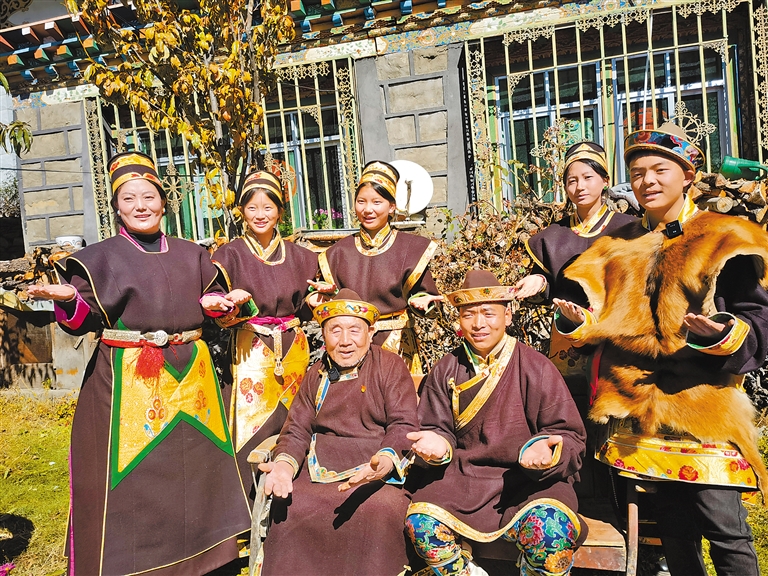 圖為穿上藏裝合影留念。記者 王珊 通訊員 王顯琴 攝