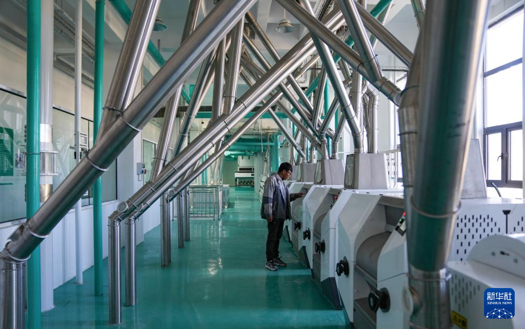 西藏稞研農業(yè)科技有限公司工作人員巡視青稞谷物專用生產線(10月16日攝)。新華社記者 晉美多吉 攝