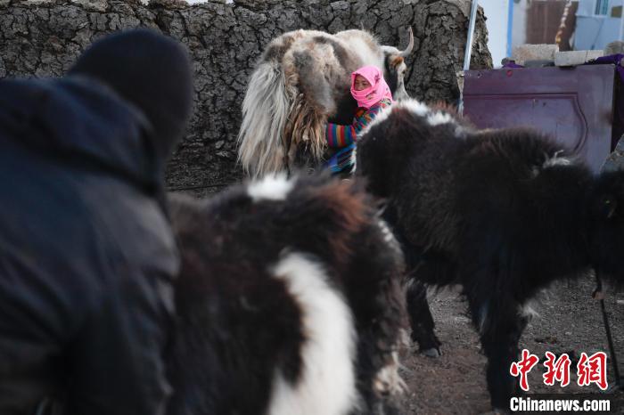 12月12日,西藏自治區(qū)那曲市安多縣帕那鎮(zhèn)牧民土巴卓瑪準(zhǔn)備去擠牦牛奶。中新社記者 貢嘎來松 攝