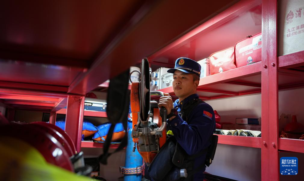 12月5日,布宮消防救援大隊隊員在例行檢查消防設備。新華社記者 晉美多吉 攝