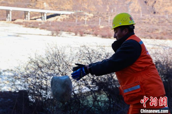 12月16日,西藏自治區(qū)林芝公路事業(yè)發(fā)展和應(yīng)急保障中心(工布江達(dá)養(yǎng)護(hù)段)道路養(yǎng)護(hù)工人及時(shí)清除川藏公路上的落石,保障道路暢通。該養(yǎng)護(hù)段擔(dān)負(fù)著川藏公路沿線工布江達(dá)縣路段的養(yǎng)護(hù)管理、應(yīng)急搶險(xiǎn)等工作,包括路面修補(bǔ)、清理邊溝、維護(hù)交通安全設(shè)施等日常養(yǎng)護(hù)工作。圖為道路養(yǎng)護(hù)工人清理公路上的落石。中新社記者 貢嘎來松 攝