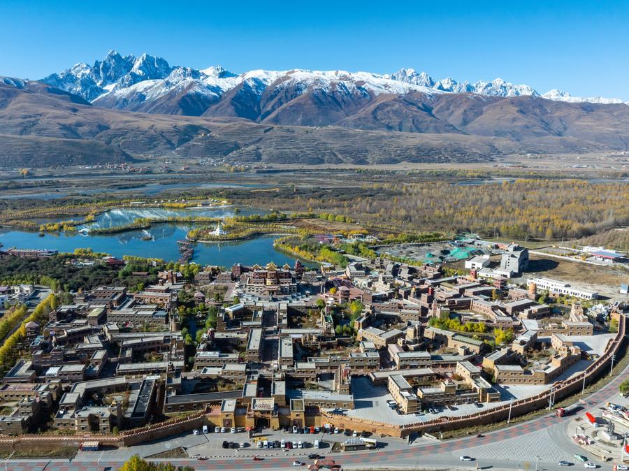 這是2024年10月29日拍攝的四川省甘孜州甘孜縣的格薩爾王城(無(wú)人機(jī)照片)。新華社記者 沈伯韓 攝