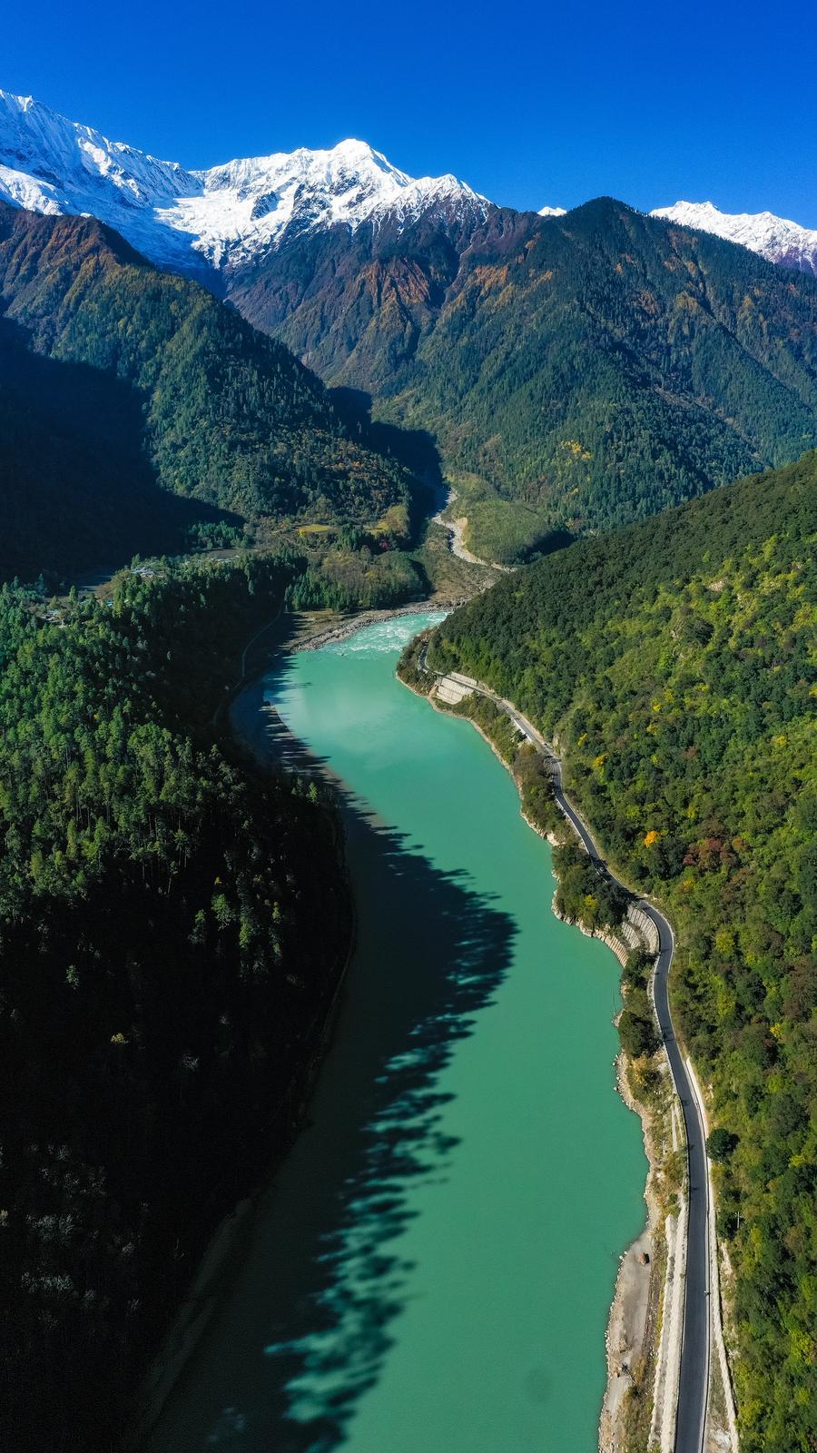 這是2024年11月8日拍攝的西藏自治區(qū)林芝市波密縣至魯朗鎮(zhèn)的國(guó)道318公路(無(wú)人機(jī)照片)。新華社記者 沈伯韓 攝