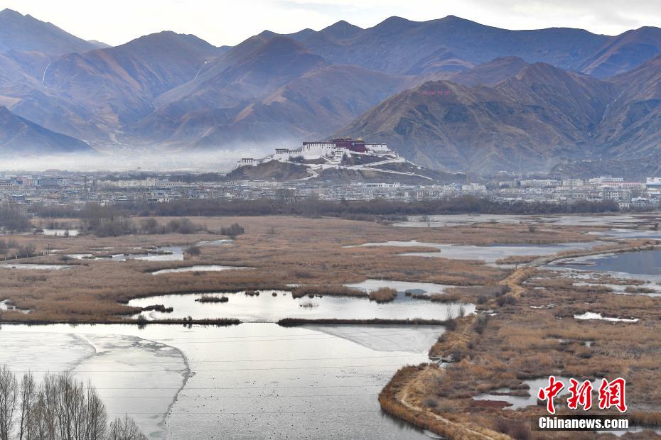 12月29日,冬日早晨,拉薩美如畫。拉薩河被晨光染成金色,河水靜靜流淌。西藏自治區(qū)拉薩市的拉魯濕地國家級自然保護區(qū)內(nèi),候鳥歡快,忙著覓食、嬉戲。遠處,布達拉宮與拉魯濕地相互映襯,構(gòu)成了一幅絕美畫卷。圖為12月29日,晨霧中的布達拉宮。貢確 攝