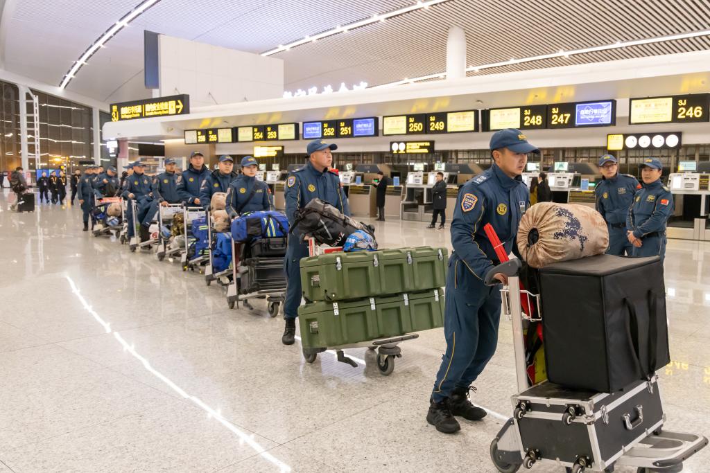 重慶市藍(lán)天救援隊(duì)一梯隊(duì)共出動(dòng)12人,攜帶衛(wèi)星電話、衛(wèi)星地面站、生命探測(cè)儀等設(shè)備,于1月9日乘坐航班從重慶前往西藏進(jìn)行地震救援行動(dòng)。