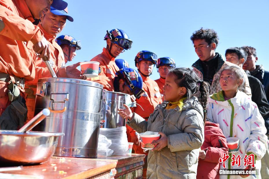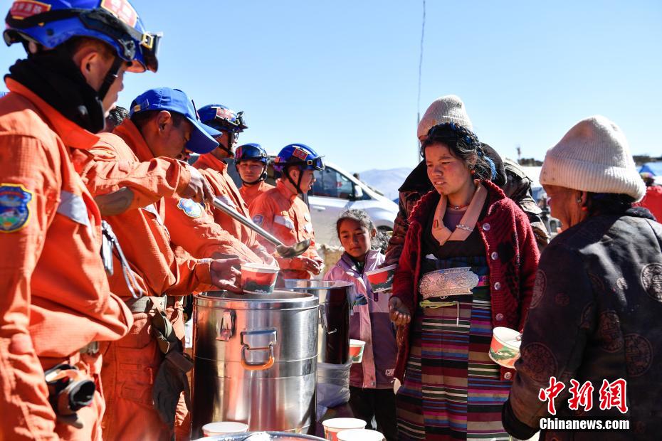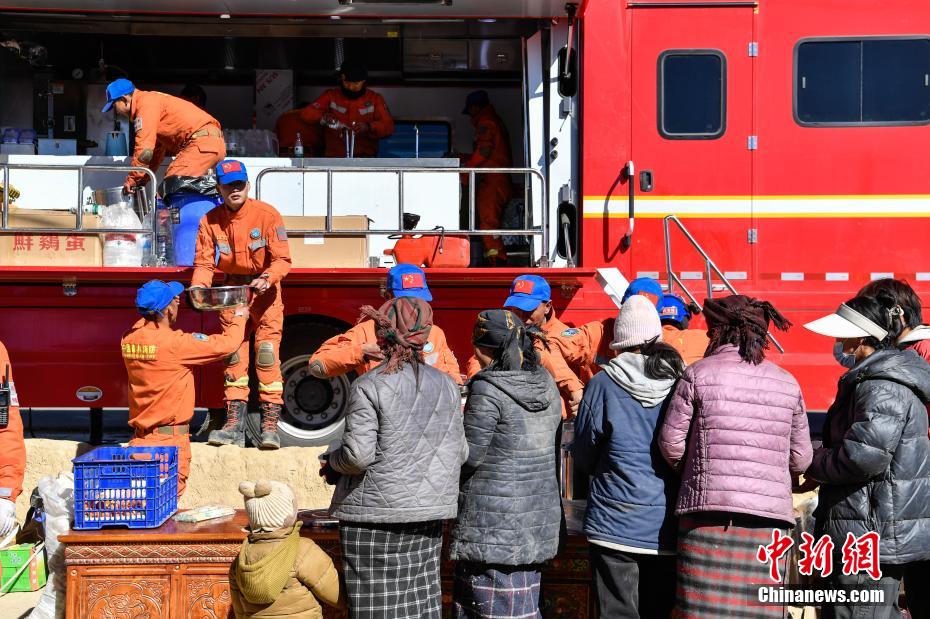 1月9日,西藏自治區(qū)定日縣曲洛鄉(xiāng)措昂村安置點,西藏自治區(qū)森林消防總隊救援人員為受災民眾提供飲食。當日,位于西藏自治區(qū)定日縣曲洛鄉(xiāng)措昂村安置點,西藏各級救援人員和愛心企業(yè)不斷轉運、發(fā)放生活物資、搭建活動板房、全力保障受災民眾的飲食供應等,保障受災民眾基本生活。中新社記者 貢嘎來松 攝