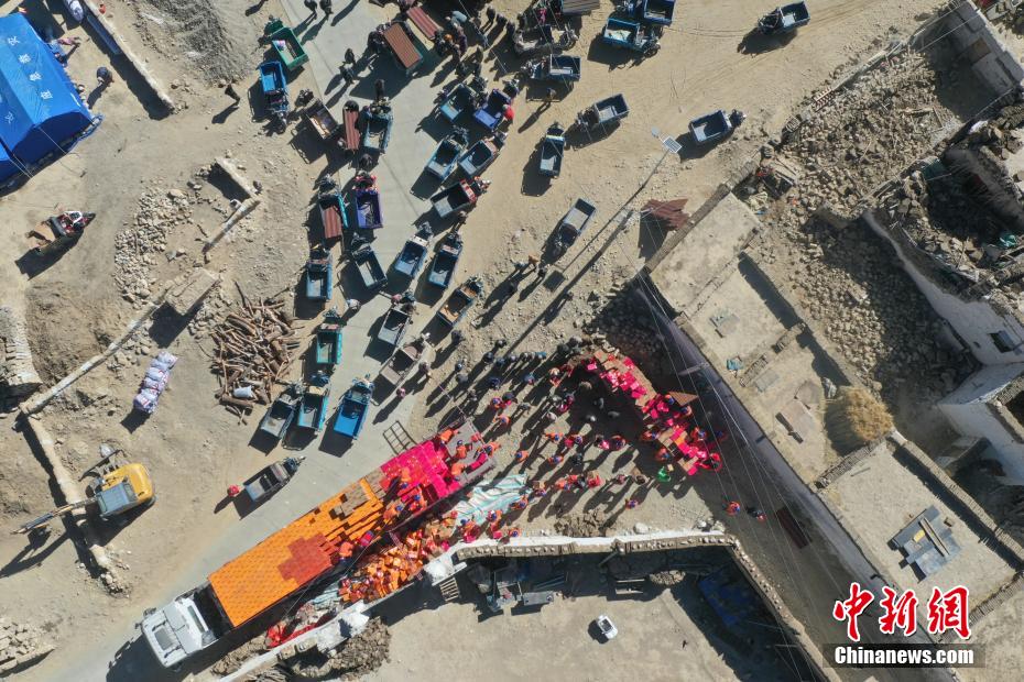 1月9日,西藏自治區(qū)定日縣曲洛鄉(xiāng)措昂村安置點,愛心企業(yè)為受災民眾搭建活動板房。當日,位于西藏自治區(qū)定日縣曲洛鄉(xiāng)措昂村安置點,西藏各級救援人員和愛心企業(yè)不斷轉運、發(fā)放生活物資、搭建活動板房、全力保障受災民眾的飲食供應等,保障受災民眾基本生活。中新社記者 貢嘎來松 攝