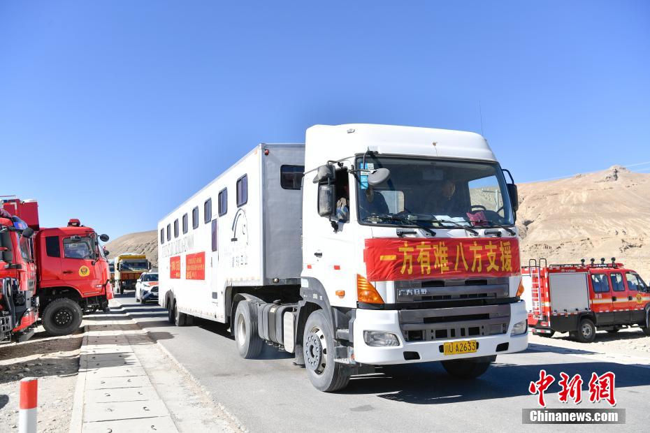 1月9日,西藏自治區(qū)定日縣曲洛鄉(xiāng)措昂村,滿載救災物資的貨車抵達安置點。當日,位于西藏自治區(qū)定日縣曲洛鄉(xiāng)措昂村安置點,西藏各級救援人員和愛心企業(yè)不斷轉運、發(fā)放生活物資、搭建活動板房、全力保障受災民眾的飲食供應等,保障受災民眾基本生活。中新社記者 貢嘎來松 攝