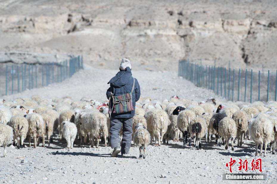 1月9日,西藏自治區(qū)定日縣曲洛鄉(xiāng)措昂村民眾在安置點附近放羊。當日,位于西藏自治區(qū)定日縣曲洛鄉(xiāng)措昂村安置點,西藏各級救援人員和愛心企業(yè)不斷轉運、發(fā)放生活物資、搭建活動板房、全力保障受災民眾的飲食供應等,保障受災民眾基本生活。中新社記者 貢嘎來松 攝