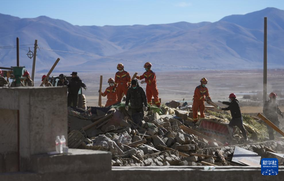 1月10日,古榮村開展震后廢墟清理工作。新華社記者 晉美多吉 攝
