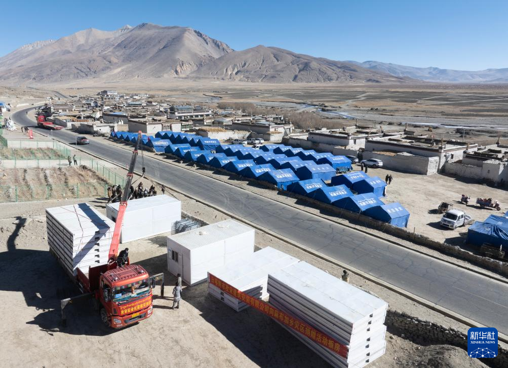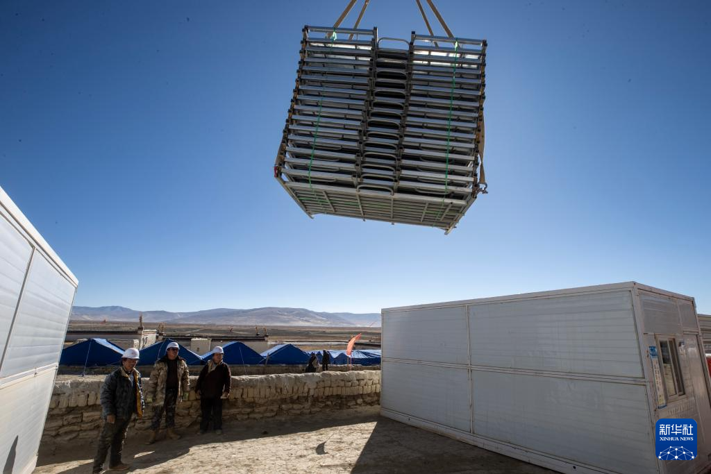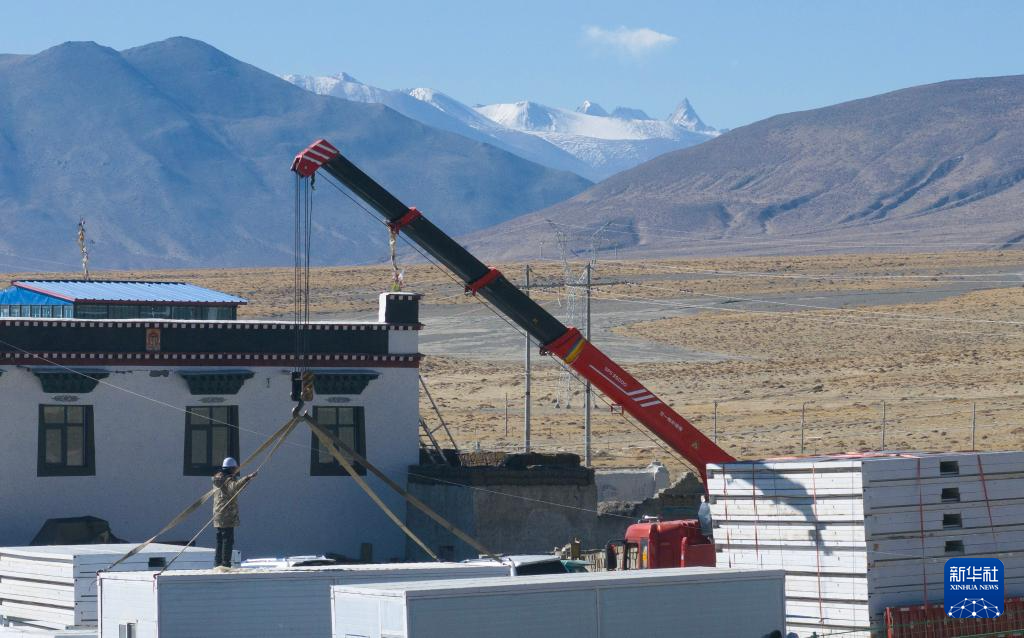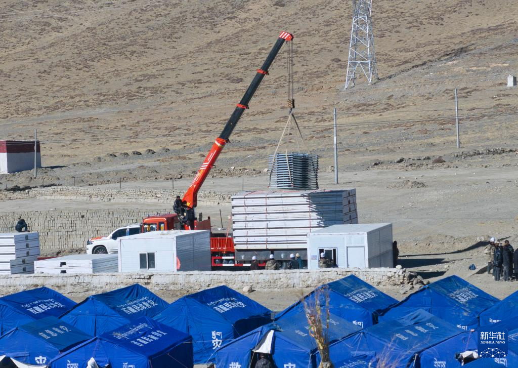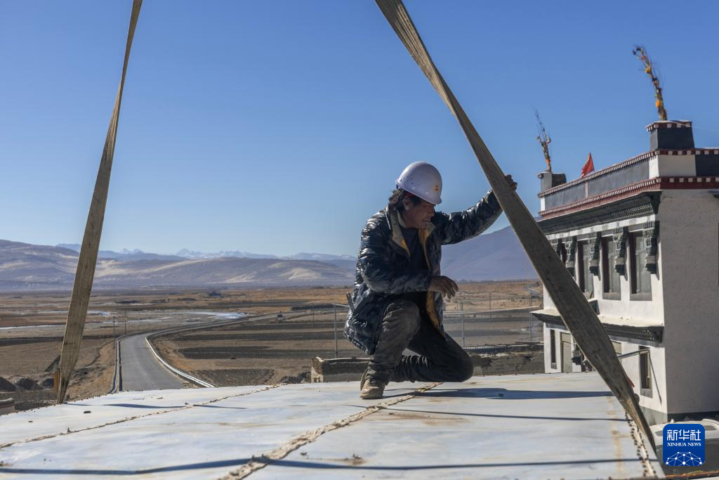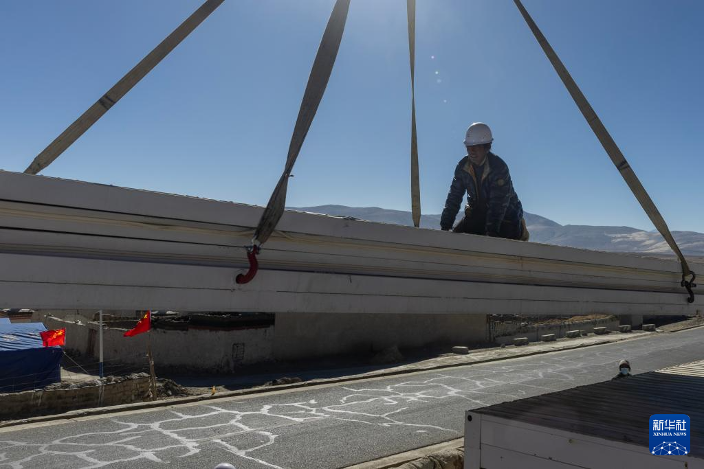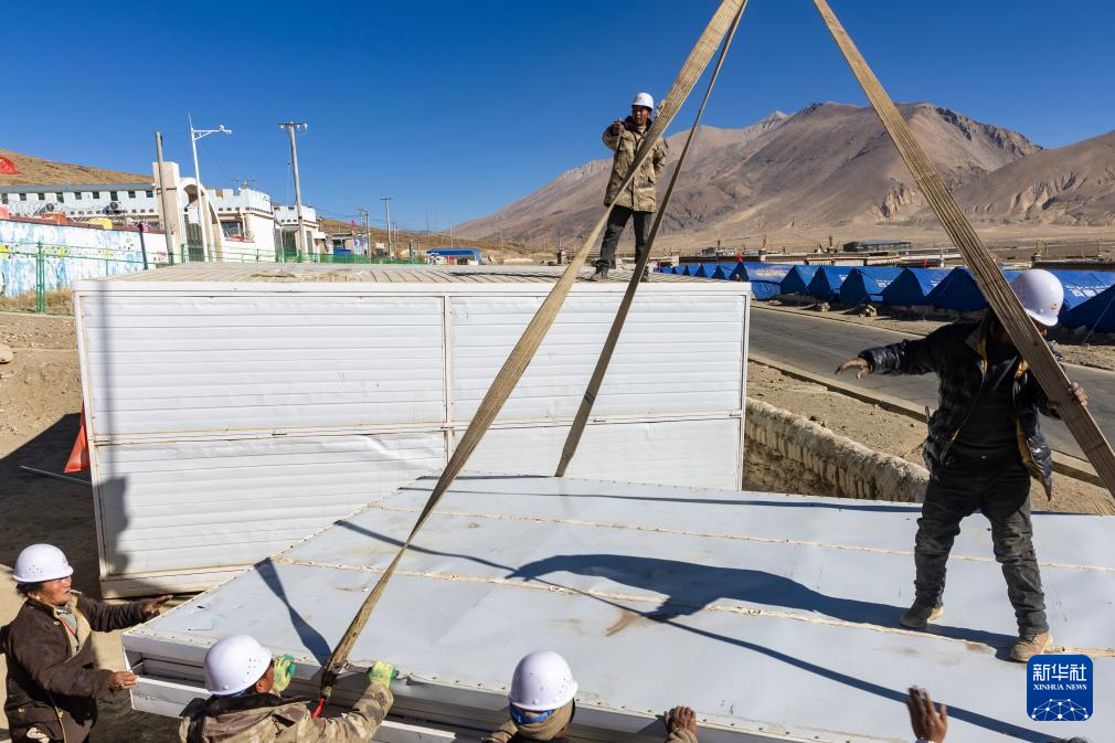 當(dāng)日,在薩迦縣麻布加鄉(xiāng)白拉村,工程人員與有相應(yīng)技術(shù)的村民一起建設(shè)活動(dòng)板房。據(jù)了解,這是薩迦縣地震災(zāi)區(qū)開(kāi)建的第一批板房。