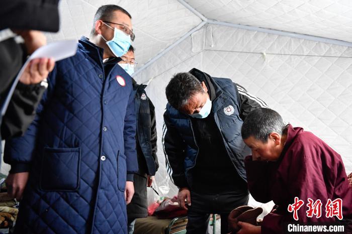 1月10日,西藏定日,醫(yī)護(hù)人員帶老人達(dá)娃的孫女去復(fù)查?!≈行律缬浾?貢嘎來松 攝