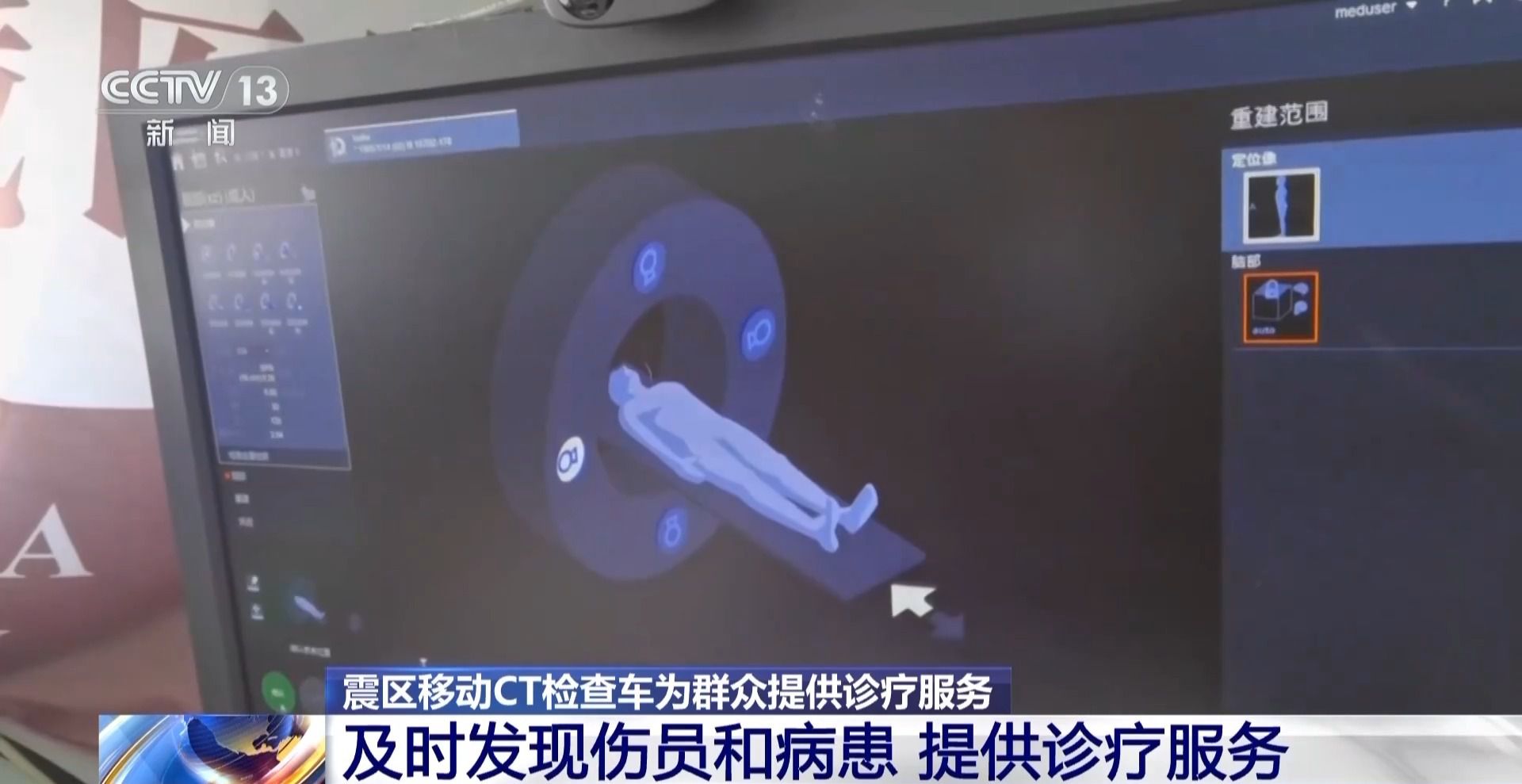 這個(gè)移動(dòng)CT檢查車開到這里的目的是什么?就是醫(yī)護(hù)人員要把這些最先進(jìn)的裝備拿到基層來,讓這些受災(zāi)的群眾能及時(shí)地進(jìn)行檢查、發(fā)現(xiàn)病患。