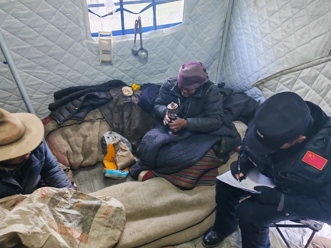 民輔警們穿梭于安置點的帳篷間,每到一處,都與群眾親切交談。“晚上睡覺冷不冷?”“吃飯還習慣嗎?”簡單的話語,飽含著無盡的關切。他們神情專注,認真傾聽群眾的反饋,無論是基本的衣食住行問題,還是特殊的醫(yī)療需求,都詳細記錄在冊。對于行動不便的老人與殘疾人,民輔警們更是格外關注,耐心細致地詢問他們在生活中遇到的種種困難,力求在第一時間給予解。