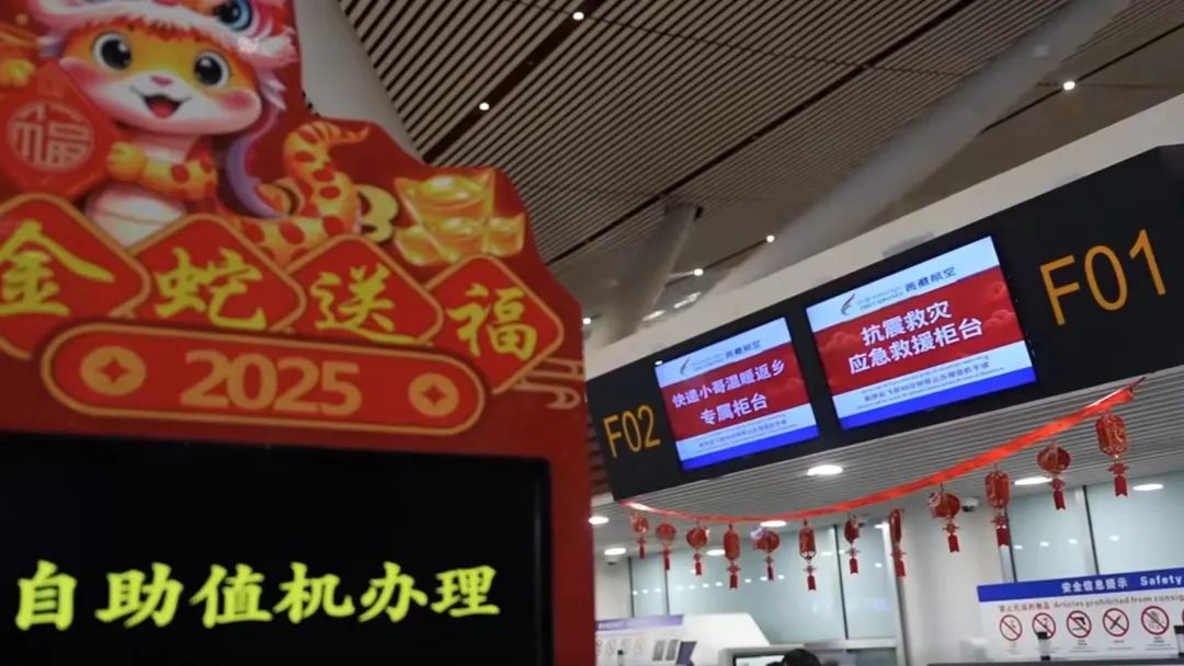 在2025年春運(yùn)期間,西藏航空有限公司專門成立春運(yùn)服務(wù)專班,在貢嘎機(jī)場的藏航服務(wù)柜臺為廣大快遞員設(shè)置了優(yōu)先保障通道,全流程、全周期為快遞小哥提供全面的服務(wù)保障。