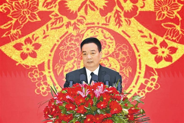 王君正在致辭中說,2024年是西藏經(jīng)濟(jì)社會(huì)發(fā)展歷程中不平凡的一年。自治區(qū)黨委團(tuán)結(jié)帶領(lǐng)全區(qū)各族干部群眾,深入貫徹落實(shí)習(xí)近平總書記關(guān)于西藏工作的重要指示和新時(shí)代黨的治藏方略,緊緊圍繞“四件大事”落實(shí),努力推動(dòng)長(zhǎng)治久安和高質(zhì)量發(fā)展取得新成效。牢固樹立總體國(guó)家安全觀,堅(jiān)持警鐘長(zhǎng)鳴、警惕常在,把維穩(wěn)工作做在日常、做到經(jīng)常、落實(shí)在基層,加快推進(jìn)依法治藏,建設(shè)更高水平的法治西藏,確保社會(huì)大局持續(xù)和諧穩(wěn)定,長(zhǎng)治久安的基礎(chǔ)更加牢固。完整準(zhǔn)確全面貫徹新發(fā)展理念,落實(shí)“三個(gè)賦予一個(gè)有利于”總要求,傳統(tǒng)產(chǎn)業(yè)提質(zhì)增效,新興產(chǎn)業(yè)加快發(fā)展,營(yíng)商環(huán)境持續(xù)優(yōu)化,努力推動(dòng)經(jīng)濟(jì)社會(huì)高質(zhì)量發(fā)展,確保經(jīng)濟(jì)發(fā)展當(dāng)前有活力、未來有潛力。(下轉(zhuǎn)第二版)(緊接第一版) 堅(jiān)持以人民為中心的發(fā)展思想,持續(xù)改善各族群眾的生產(chǎn)生活條件,改進(jìn)工作方式方法,采取針對(duì)性措施解決好群眾關(guān)心的醫(yī)療、教育、就業(yè)等實(shí)際問題,西藏班招生規(guī)模不斷擴(kuò)大,全區(qū)城鄉(xiāng)面貌發(fā)生深刻變化,各族群眾的獲得感幸福感安全感持續(xù)增強(qiáng)。持之以恒推進(jìn)全面從嚴(yán)治黨,堅(jiān)決貫徹黨中央關(guān)于全面從嚴(yán)治黨的戰(zhàn)略部署,牢固樹立憑能力用干部、以實(shí)績(jī)論英雄的鮮明用人導(dǎo)向,努力建設(shè)一支忠誠(chéng)干凈擔(dān)當(dāng)?shù)母刹筷?duì)伍,黨的戰(zhàn)斗力、凝聚力、領(lǐng)導(dǎo)力、號(hào)召力不斷增強(qiáng)。日喀則市定日縣地震發(fā)生后,自治區(qū)黨委認(rèn)真貫徹落實(shí)習(xí)近平總書記重要指示精神和中共中央政治局常務(wù)委員會(huì)會(huì)議精神,按照黨中央、國(guó)務(wù)院決策部署,全區(qū)黨政軍警民齊心協(xié)力、協(xié)調(diào)聯(lián)動(dòng),廣大黨員干部勇于擔(dān)當(dāng)、沖鋒在前,科學(xué)救治受傷群眾,全力搶修基礎(chǔ)設(shè)施,妥善安置受災(zāi)群眾,確保了人民群眾生命財(cái)產(chǎn)安全,抗震救災(zāi)工作取得階段性勝利。西藏各項(xiàng)事業(yè)的發(fā)展進(jìn)步,是以習(xí)近平同志為核心的黨中央英明領(lǐng)導(dǎo)的結(jié)果,是習(xí)近平新時(shí)代中國(guó)特色社會(huì)主義思想科學(xué)指引的結(jié)果,是全區(qū)各族人民努力奮斗的結(jié)果。