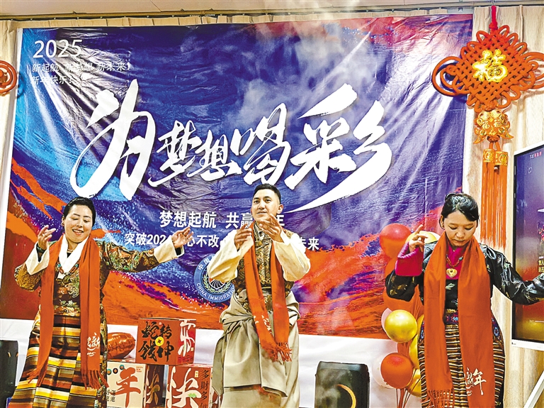 日喀則市亞?wèn)|出入境邊防檢查站開(kāi)展以“夢(mèng)想起航 共贏蛇年”為主題的春節(jié)聯(lián)歡會(huì)。記者 王莉 通訊員 許鵬飛 攝