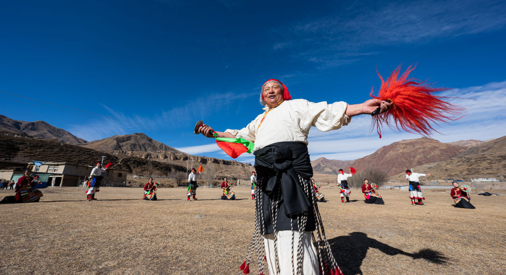 新年伊始,在西藏昌都市丁青縣尺犢鎮(zhèn)的草壩上,烏巴村文藝演出隊(duì)正在熱火朝天地排練。盡管寒風(fēng)凜冽,但激昂的鼓點(diǎn)和熱烈的音樂(lè),讓這片土地充滿了生機(jī)與活力。