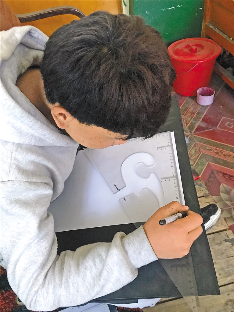 “那段時間是最難熬的,每天睜開眼除了吃飯,其他時間都在畫畫?!甭遄犯嬖V記者,當(dāng)他真正開始學(xué)習(xí)時,才深刻體會到要想成為唐卡手藝人,需要付出更多努力。“也曾想過放棄,但還是咬咬牙堅持了下來?!闭f到這里,洛追有些靦腆地笑了笑。